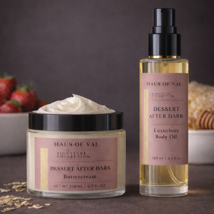Dessert After Dark pairs beautifully with your favorite body oils and buttercreams and was designed to linger softly on the skin — inviting, addictive, and unforgettable.